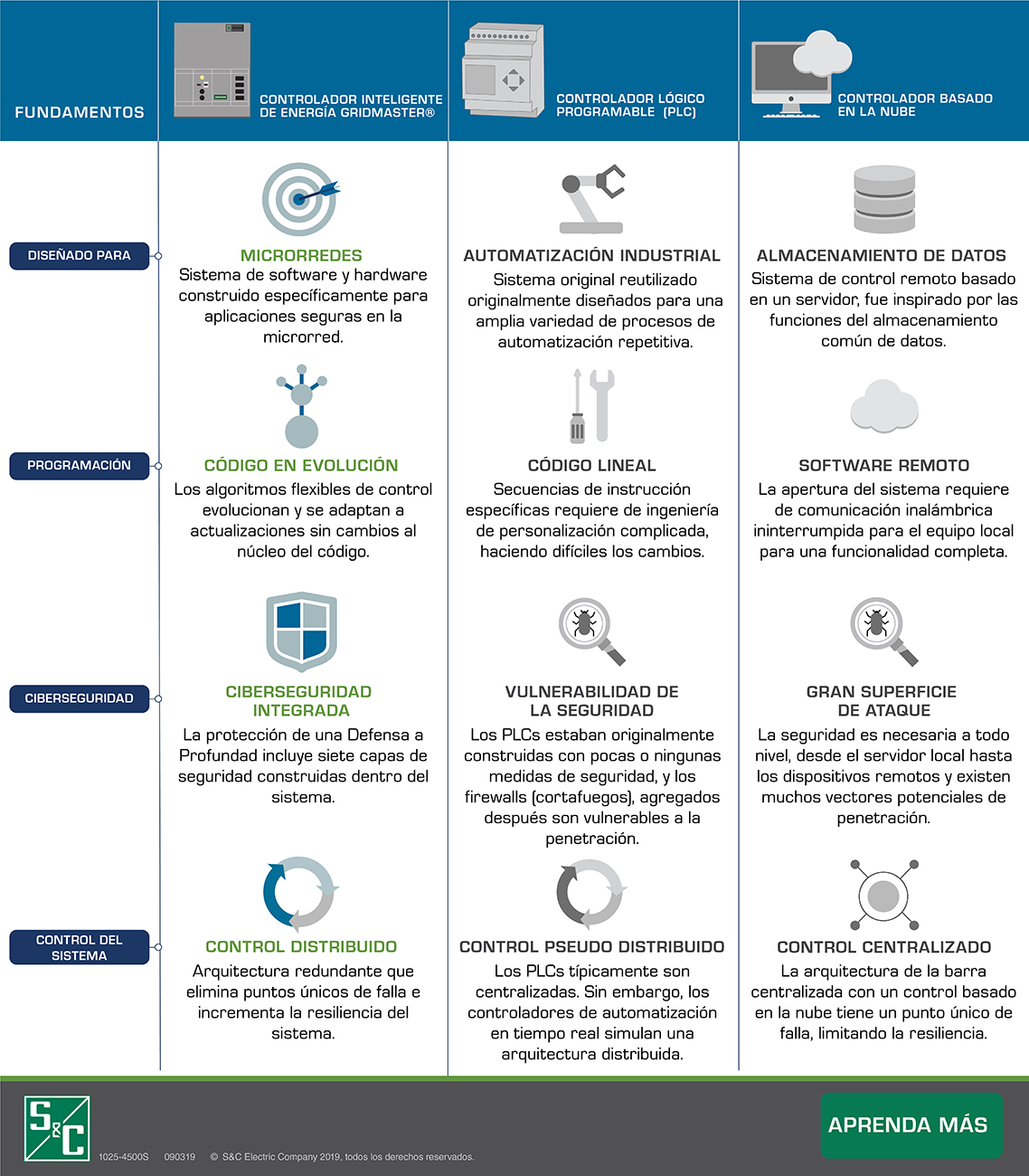 A medida que la red cambia, la necesidad de contar con soluciones eléctricas sostenibles y resilientes es cada vez más fundamental, y las microrredes constituyen una herramienta para que las empresas de servicios públicos, así como las industriales y comerciales, aborden nuevos desafíos y requisitos de red. Aunque a menudo las empresas se ven tentadas a reducir los costos y eludir los controles de microrred de calidad, hacerlo representa una apuesta peligrosa. Sin el sistema de control adecuado, su microrred podría ser solo una colección de equipos costosos que no funcionarán correctamente en conjunto o serán objeto de ataques de piratas informáticos fácilmente.
